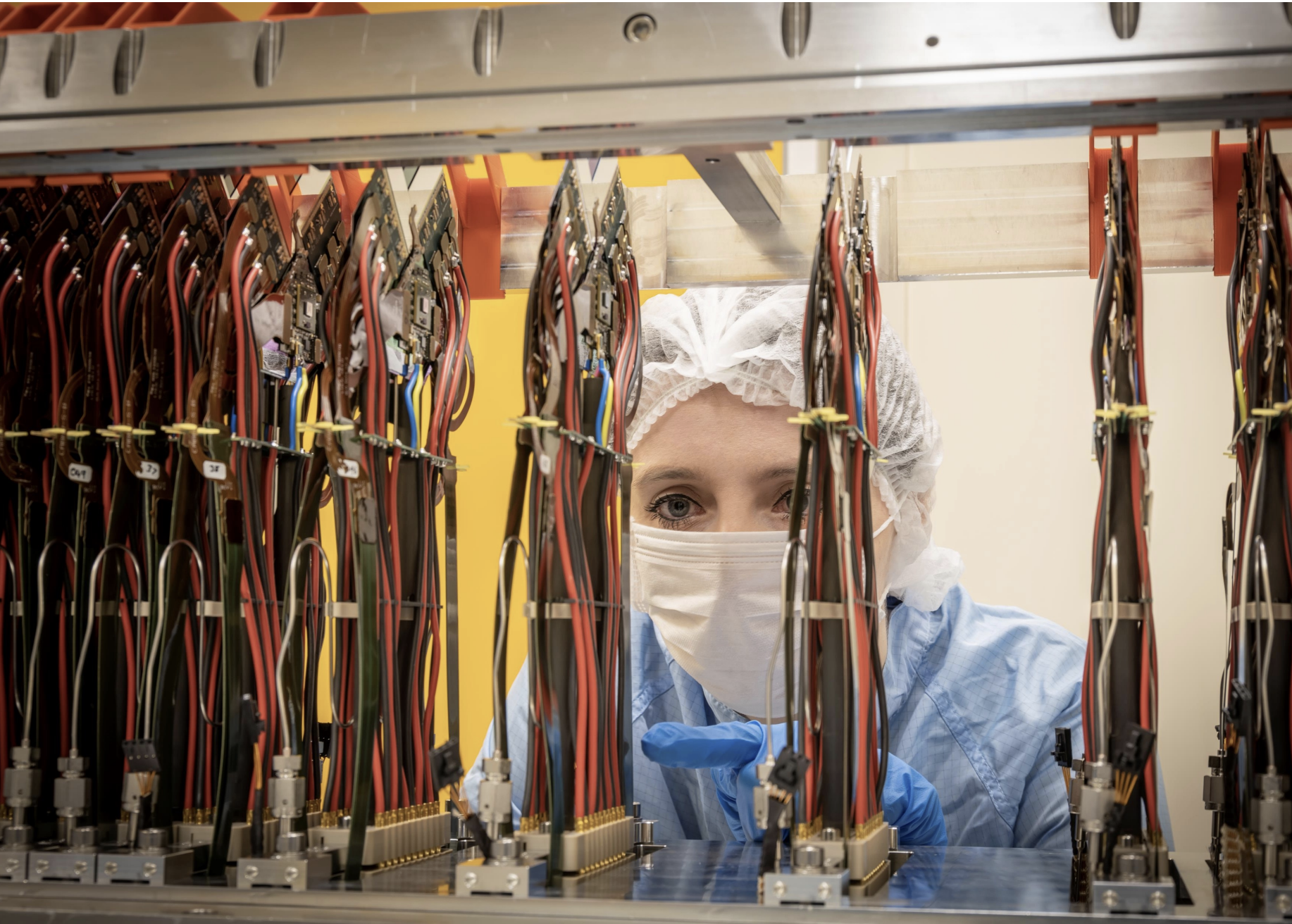 Top image: Photo from the STFC-funded assembly and quality assurance of the VELO detector for the LHCb experiment being carried out at the University of Manchester. Credit: STFC