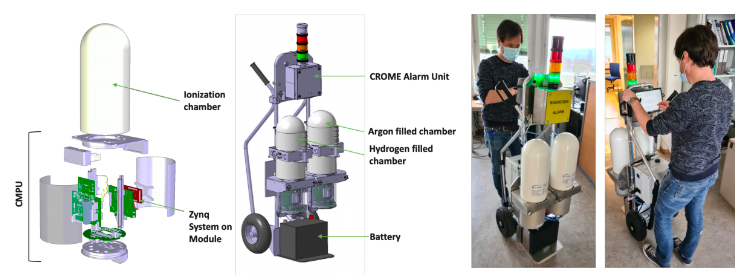 CROME has the ability of measuring very low dose rates down to 50 nSv h−1, whilst being able to measure radiation over a range extending over 9 decades without autoscaling. To reach these performances, the CROME Measurement and Processing Unit (CMPU) is based on the versatile architecture that includes new read-out electronics developed by the Instrumentation and Logistics (IL) section of the RP group coupled with a Zynq reconfigurable System on Chip (SoC) capable of performing complex processing calculations. CROME uses the FPGA section of the SoC for all safety critical functions (Toner et al. 2019).